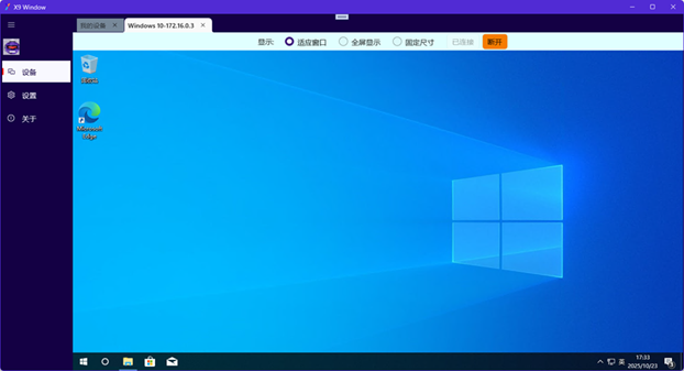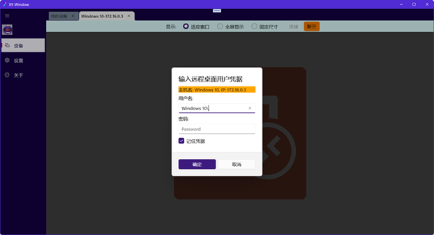- 点击对方计算机图标进行连接,输入Windows远程桌面的用户名密码即可连接。