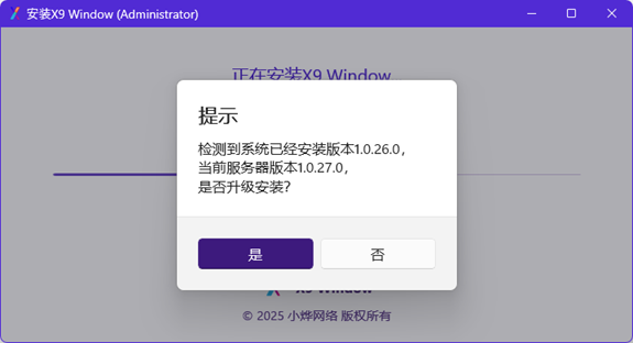 - 如果已经安装过旧版本,会自动检测并提示是否升级新版本,遇到此情况建议升级;