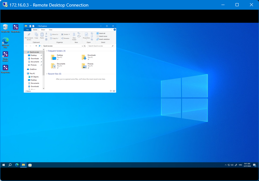 窗口拖多大,远程桌面就填多大。画面通过插值算法等比缩放,始终铺满当前窗口。这背后其实是一套插值算法在起作用。窗口变大了,内容被“撑大”;窗口变小了,内容被“压缩”。结果是:画面始终适配窗口,但文字边缘不再那么锐利,图标细节也略有损失。如果你在 4K 屏幕上把一个远程窗口缩得比较小,那些文字可能变得不太好辨认。